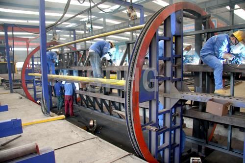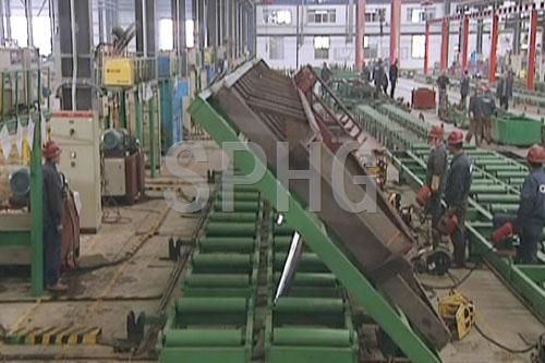 采用自動定位方式,所有工位均采用自動焊接。整條生產(chǎn)線采用滾輪輸送方式,在生產(chǎn)過程中,盡量避免行吊在工件上的使用,節(jié)省了行吊的使用時(shí)間,提高了工作效率。