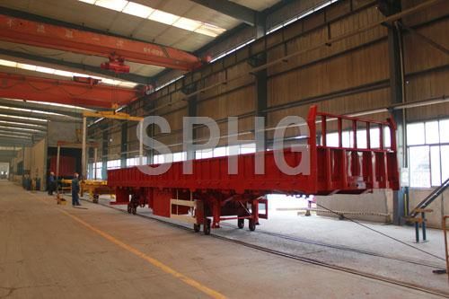 半掛車生產(chǎn)線采用滾輪生產(chǎn)方式,生產(chǎn)過程中減少了行車的使用頻率,降低產(chǎn)品的生產(chǎn)時(shí)間,提高了工作效率,增加安全系數(shù)。對半掛車的工藝布局進(jìn)行合理的規(guī)劃,結(jié)合用戶的實(shí)際需求設(shè)計(jì)制造工裝、夾具及專用焊接設(shè)備。
