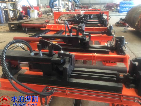 液壓縱梁點固工裝可同時加工兩件大梁,兩側(cè)互不干擾,適用于多種類型,鵝頸處可直接壓彎成型增加效率,翼板、腹板可隨意調(diào)節(jié)適用更多大梁,上下翼板采用旋轉(zhuǎn)油缸壓緊可防止翼板焊接時變形,腹板配有壓緊機(jī)構(gòu),工裝配有大梁升降輸送滾輪方便工件工位之間的輸送。