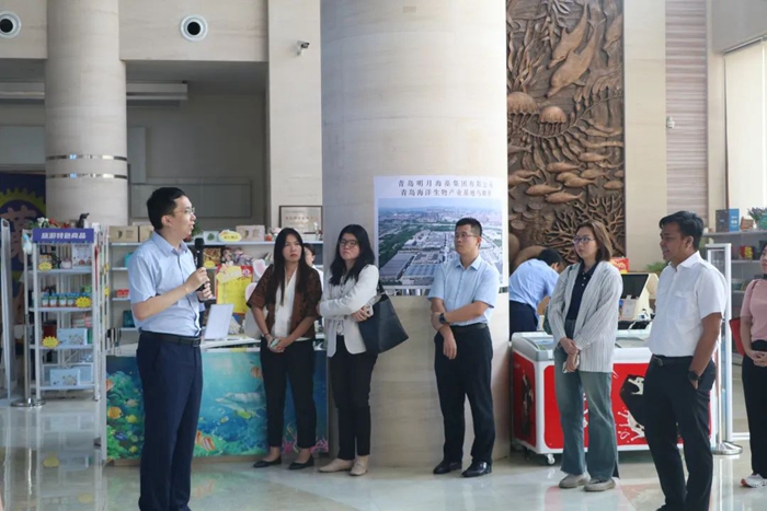 8月15日,印尼海洋與投資統籌部副部長 Mochammad Firman Hidayat 等一行20人在華大集團印尼代表與駐青島團隊的陪同下,走進明月海藻集團。集團資深副總裁、健康科技集團總裁張健,集團副總裁張德蒙,五彩文旅集團副總裁楊曉菁,明月學院副院長李可昌陪同參觀。