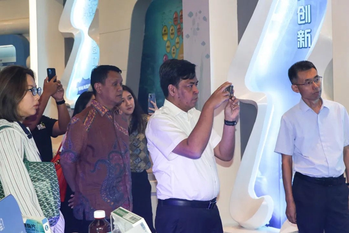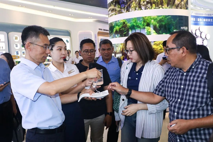 訪問期間,印尼代表團在集團領導的陪同下,深入參觀了中國海藻科技館、國家重點實驗室以及海藻部落與健康舫,品嘗了晶粉、米餅、清幽樂、果泥等健康食品,領略了明月在海藻資源開發利用、科技創新及健康產品研發方面的最新成果。代表團成員對明月在“海藻+健康”產業鏈上的全面布局及卓越成就給予了高度贊譽。