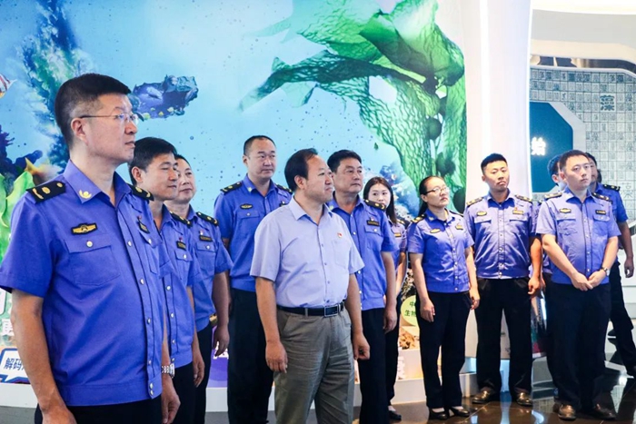 活動中,執法局一行人先后參觀了中國海藻科技館、全國重點實驗室,了解了明月深耕海藻活性物質及終端產品高值開發的高科技生產線和研發中心,對集團如何將黨建工作與科技創新深度融合,推動海藻資源的高效利用與產業升級的發展路徑進行了高度評價。