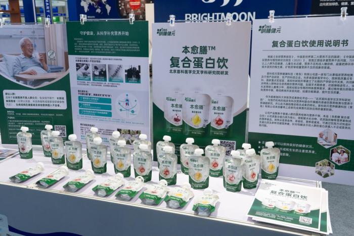 全新推出的明膳健元ons系列產(chǎn)品—本愈膳?復(fù)合蛋白飲也在本次展會(huì)中首次亮相。由北京首科醫(yī)學(xué)交叉學(xué)科研究院研發(fā),聚焦于普通人群的營養(yǎng)檢測(cè)與營養(yǎng)干預(yù)。以優(yōu)質(zhì)復(fù)合蛋白質(zhì)為核心,搭配碳水化合物、優(yōu)質(zhì)脂肪酸等營養(yǎng)素,易食用、易吸收、營養(yǎng)密度高,可通過飲用方式快速補(bǔ)充蛋白質(zhì)及多種關(guān)鍵營養(yǎng)素。深受現(xiàn)場(chǎng)消費(fèi)者青睞,成為現(xiàn)場(chǎng)的“明星產(chǎn)品”。